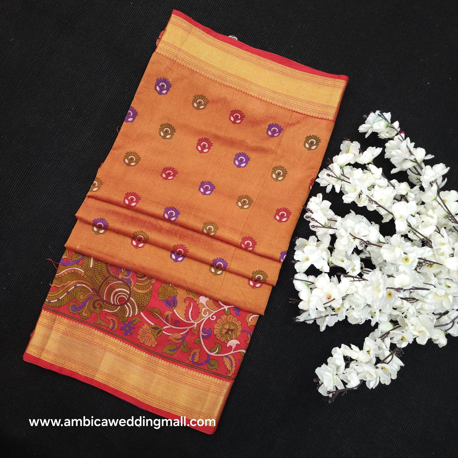 Kalamkari Fancy Saree This Kalamkari Fancy Saree showcases intricate hand-painted designs and vibrant colors, providing a unique and elegant style. Made with premium quality fabric, it offers comfort and durability. Perfect for special occasions, this saree is a must-have for any fashion-forward individual.