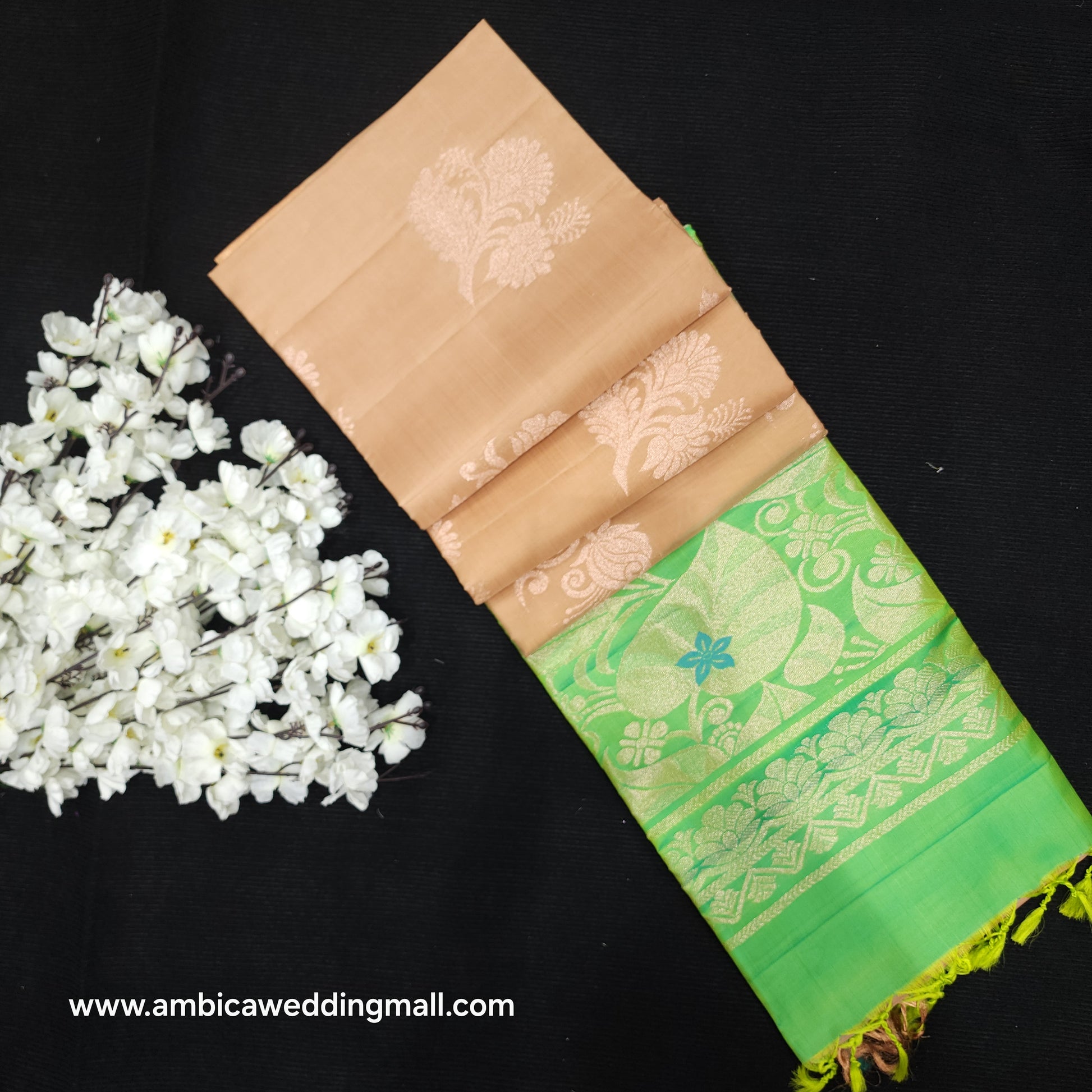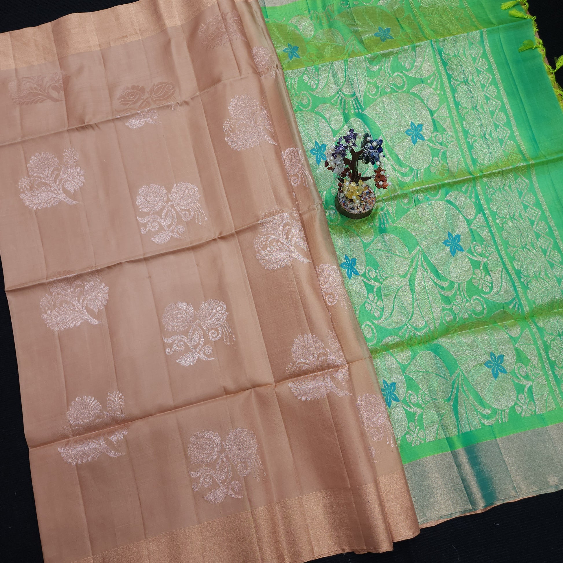 Kanchi Pattu Handloom Butta SareeThis traditional Kanchi Pattu Handloom Butta Saree is meticulously woven with intricate designs and patterns. Made from high-quality silk, it offers unmatched comfort and elegance. Perfect for any special occasion, this saree is a timeless addition to any wardrobe.