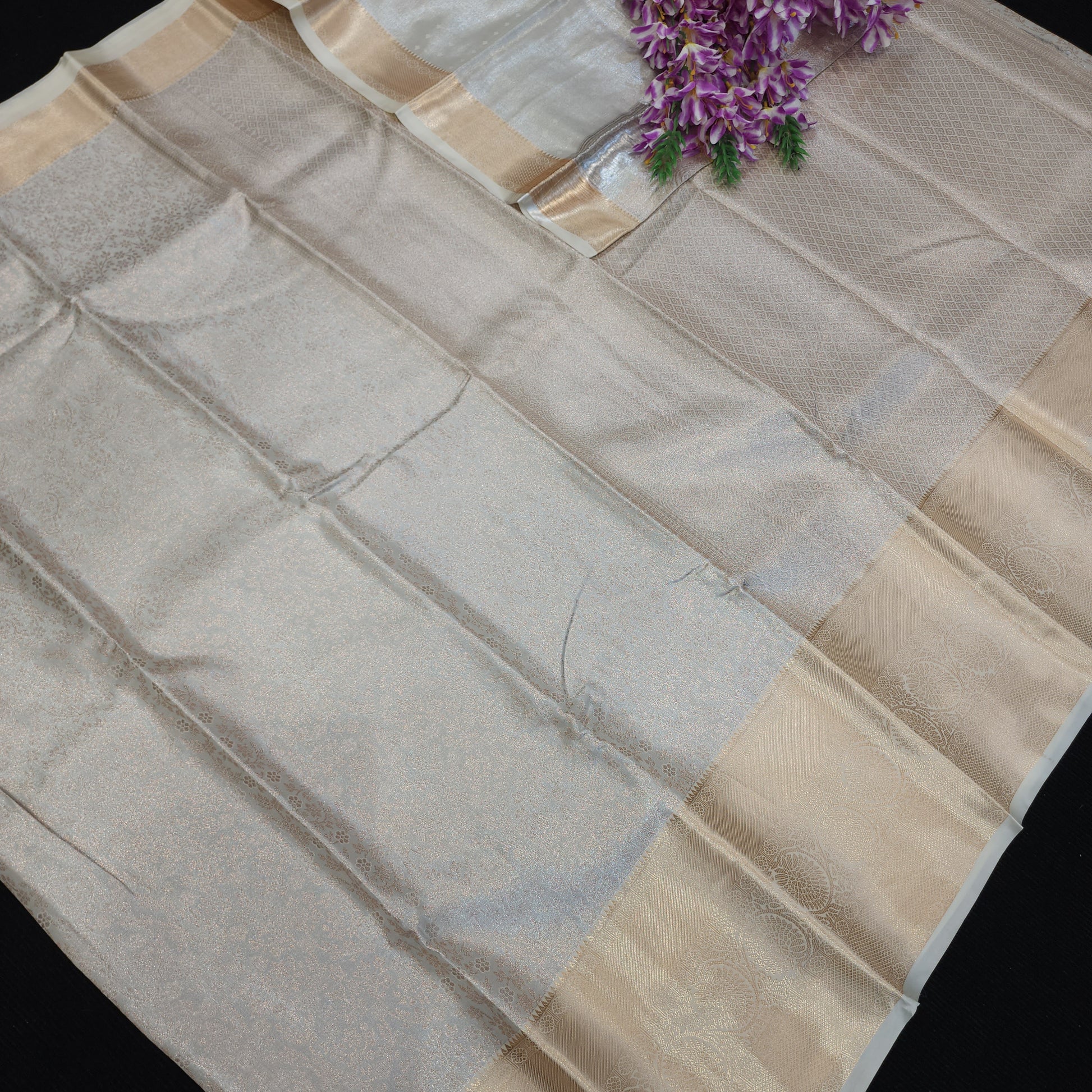 Semi Kanchi Pattu Pastel SareeThis exclusive Semi Kanchi Pattu Pastel Saree is perfect for formal occasions. Made with fine quality fabric, this saree will provide you with both comfort and elegance. The soft pastel colors add a touch of sophistication to your look. Upgrade your wardrobe with this must-have piece.