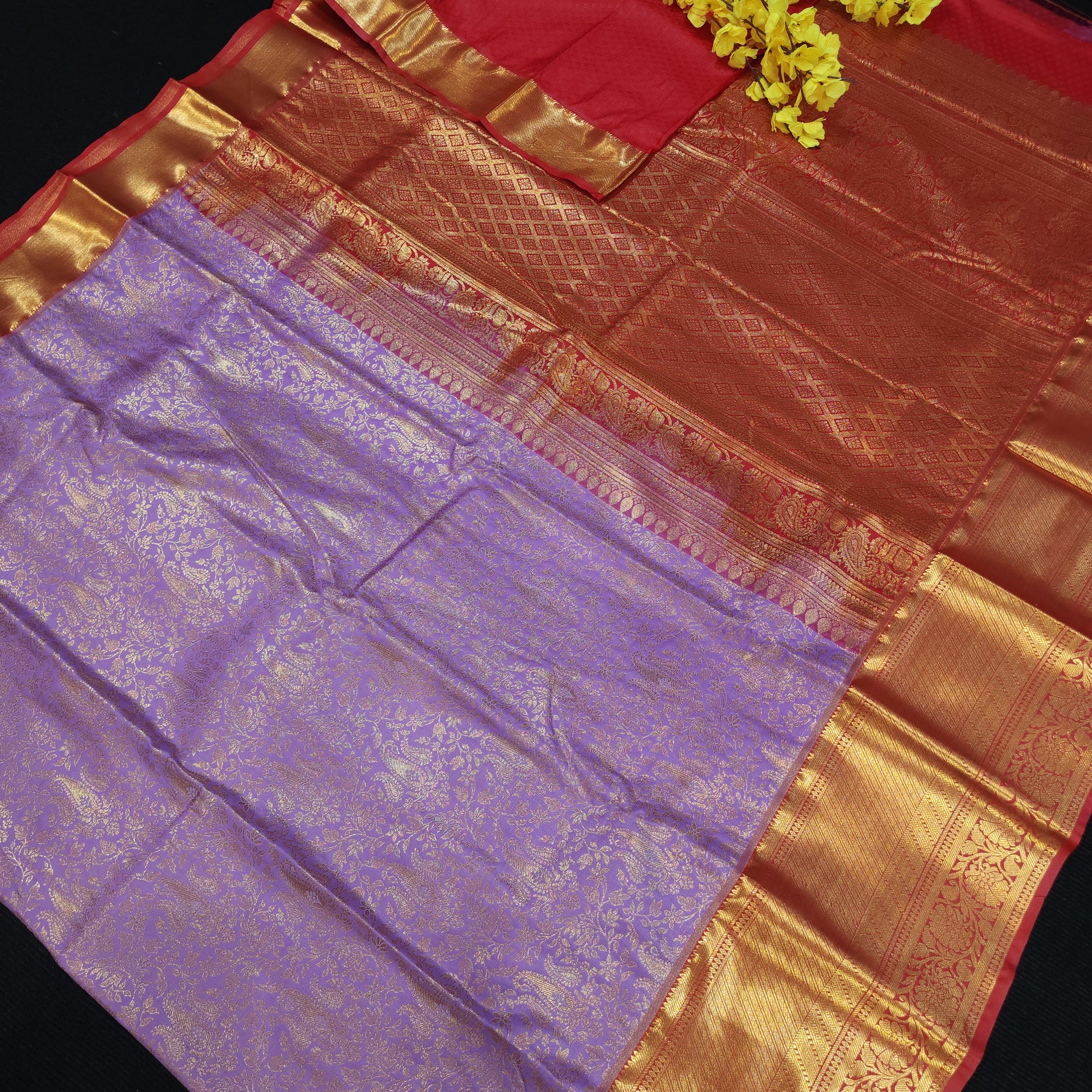 Special Lavender Semi Kanchi Pattu SareeThis Special Lavender Semi Kanchi Pattu Saree is a must-have for any traditional occasion. Crafted with intricate details and luxurious fabric, it exudes elegance and class. Perfect for adding a touch of grace and sophistication to any outfit, this saree is sure to make you stand out from the crowd. Experience the benefits of wearing this beautiful saree today.